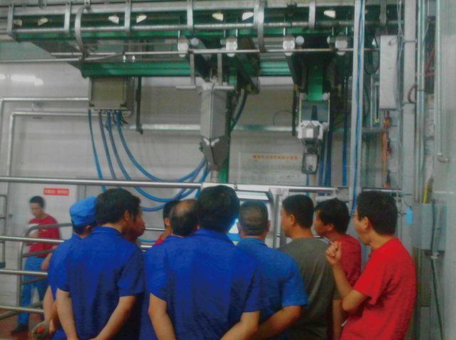 在集團(tuán)于建平***副董事長(zhǎng)提出“加快、***提高屠宰線自動(dòng)化”的號(hào)召下,公司積極與具有國際品牌的屠宰設(shè)備廠家進(jìn)行溝通和洽談并簽訂合同。2013年6月15日,自動(dòng)開骨開膛機(jī)隨著吊車的繩索,緩緩落到洛陽正大院內(nèi)。