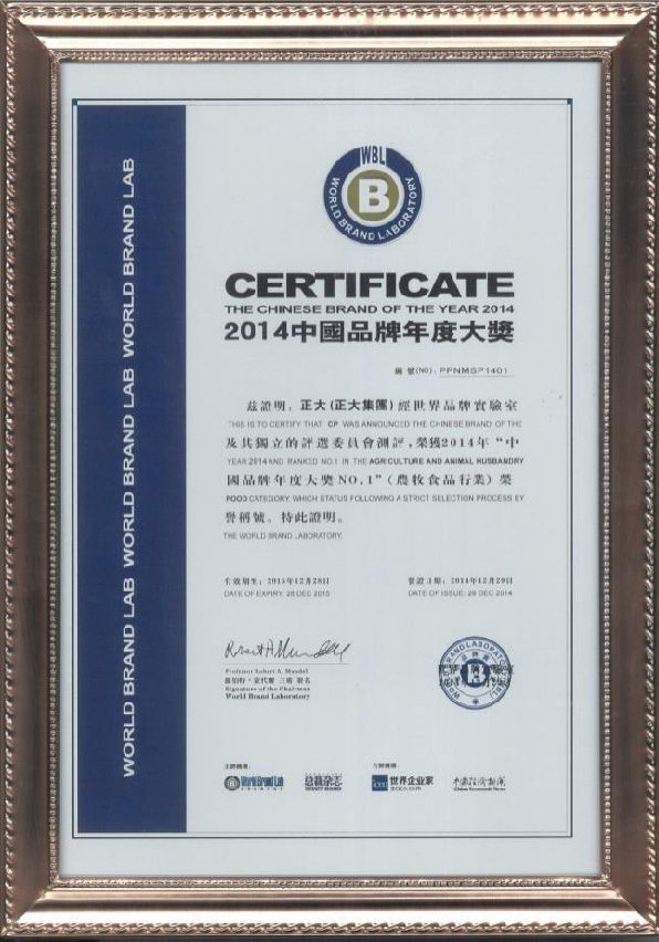 2014年12月29日,“總裁世界年會”在北京東方君悅大酒店舉行。本次大會揭曉了享有“中國品牌奧斯卡”之稱的 “世界品牌實驗室2014年中國品牌年度大獎”評選結(jié)果,正大集團(tuán)、中國國航、國家電網(wǎng)、騰訊控股、中國人壽、中國國旅、北汽集團(tuán)、華為技術(shù)、長虹電器等30個活躍在中國經(jīng)濟(jì)舞臺的領(lǐng)軍品牌榮獲 “中國品牌年度大獎”,正大集團(tuán)以在農(nóng)牧食品業(yè)多年的探索實踐和管理經(jīng)驗,以及良好的產(chǎn)品品質(zhì)和品牌知名度,榮獲農(nóng)牧食品行業(yè)“中國品牌年度大獎***”榮譽(yù)稱號。哈佛商學(xué)院教授約翰?戴騰博士(John Deighton)、耶魯大學(xué)管理學(xué)院教授萊維·多爾博士(Ravi Dhar)分別進(jìn)行頒獎及致詞。